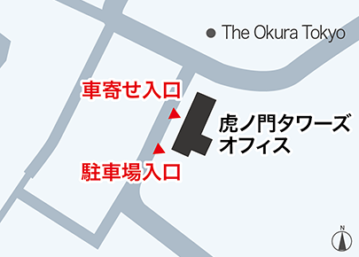 車でお越しの場合は、虎ノ門タワーズ地下2階の時間貨駐車場「タイムズ虎ノ門タワーズ」が便利です。